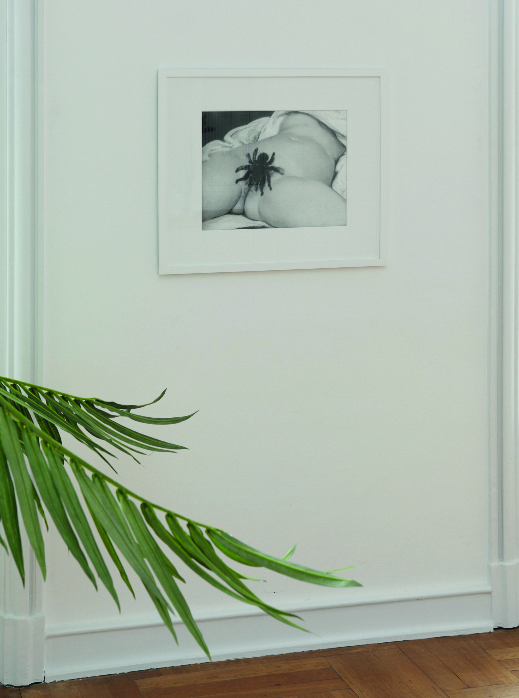 Dazu gab nun „Maison de Plaisance“ im Schloss Morsbroich eine weitere Gelegenheit. Neben Trockel zeigte die Ausstellung im alten Lustschloß in Leverkusen auch Arbeiten von Paloma Varga Weisz. Die beiden Künstlerinnen luden ein, einen Parcours durch autonome Skulpturen, Fotografien und Zeichnungen, bis hin zu raumgreifenden Installationen abzuschreiten. In manchen Räumen vermischten sich die Arbeiten der beiden, andere blieben nur einer Künstlerinn vorbehalten. Am Beispiel der Arbeit „Replace me“ lässt sich leicht verdeutlichen, welche Mittel bei Trockel zum Einsatz kommen, um die beschriebene Wirkung abzurufen. Es handelt sich um eine schwarz-weiße Fotografie, die Courbets „L'Origine du monde“ abbildet. Die Abbildung unterscheidet sich jedoch in einem entscheidenden Punkt vom Original: Auf der Scham sitzt eine Vogelspinne, die diese größtenteils verdeckt. So präsentiert sich das Objekt als Abwandlung eines bekannten Bildes, das beim Betrachter Ansätze von Erregung über Ekel bis hin zur Belustigung auslösen mag. Die Bandbreite an möglichen Wirkungen ist also schon in der unmittelbaren Reaktion recht groß. Weiter vergrößert wird sie auf der symbolischen Ebene. Sowohl Courbets Malerei, als auch die Spinne, besitzen enormen Bedeutungsreichtum. Es gibt kaum einen Sachverhalt, der sich nicht in direkte Beziehung zu diesen beiden Symbolen setzen lässt. Der mögliche Assoziationsraum ist also dermaßen groß, dass eine bestimmte Leserichtung so ziemlich ausgeschlossen werden kann. Anstatt mit zielführendem Einsatz von Bildmitteln hat man es mit einer Assoziationsplattform kaum ermesslicher Ausmaße zu tun, die in ihrem Optionsreichtum und ihrer Offenheit dem eines unbeschriebenen Blatts Papier erschreckend nahe kommt. Dabei besteht der Einsatz von symbolisch vielfach kodiertem Material zugleich auf dem Eindruck, hier sei tatsächlich etwas formuliert worden – nur, dass es keine Möglichkeit gibt, dem auch näher zu kommen.